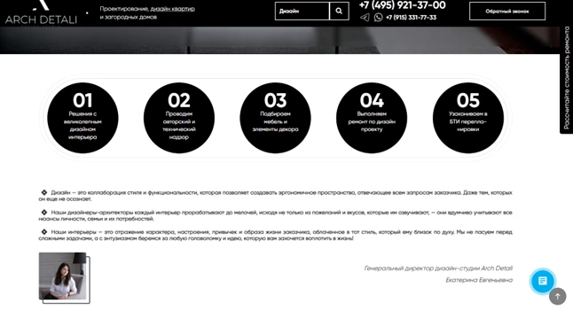 Сильные стороны: Сильная позиция в формате полного цикла. Понятный вход в работу, заметная связка проектирования со стройкой, комплектацией и сопровождением. Удобный вариант для клиента, который не хочет отдельно собирать дизайнера, инженера, мебельщика и ремонтную команду.