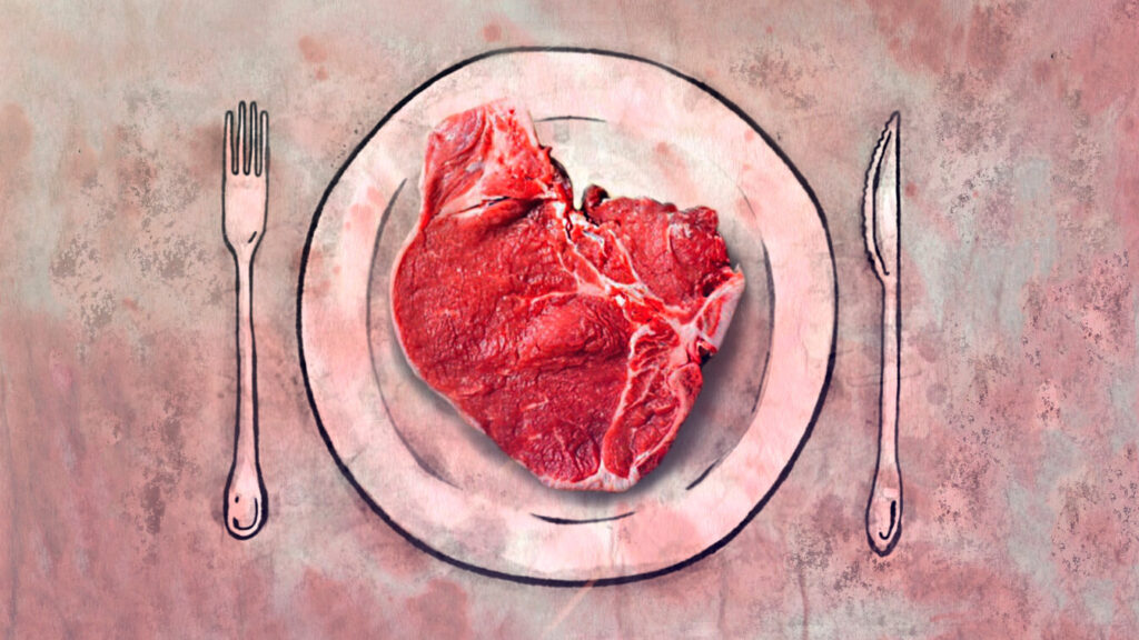 Бычок убегает с фермы и попадает в мир человеческого лицемерия. Хлесткий короткий метр об отношении к животным