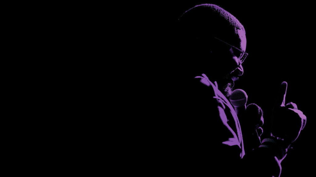 Лил Рел Ховери, виртуозно превращающий случайные знакомства в уморительные истории, выступает перед живой аудиторией в средней школе Susan Miller Dorsey в Лос-Анджелесе.