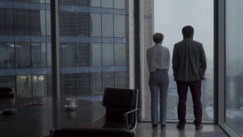 Молодая офисная работница Юлия Васильевна выслушивает уверенный и несправедливый текст из уст своего начальника, лишающий ее 80 процентов честно заработанных денег.