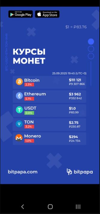 Bitpapa — платформа, где всё летает! Сделки моментальные, интерфейс проще некуда. А еще у них крутой чат, где всегда кто-то онлайн, готовый помочь. Приложение — огонь, всё под рукой. Однозначно рекомендую!