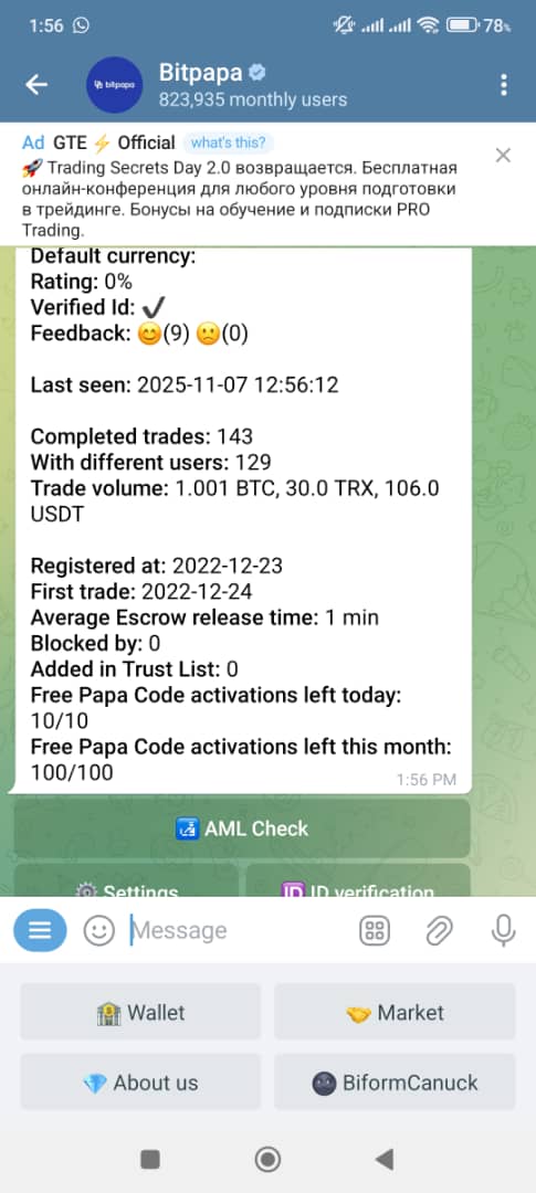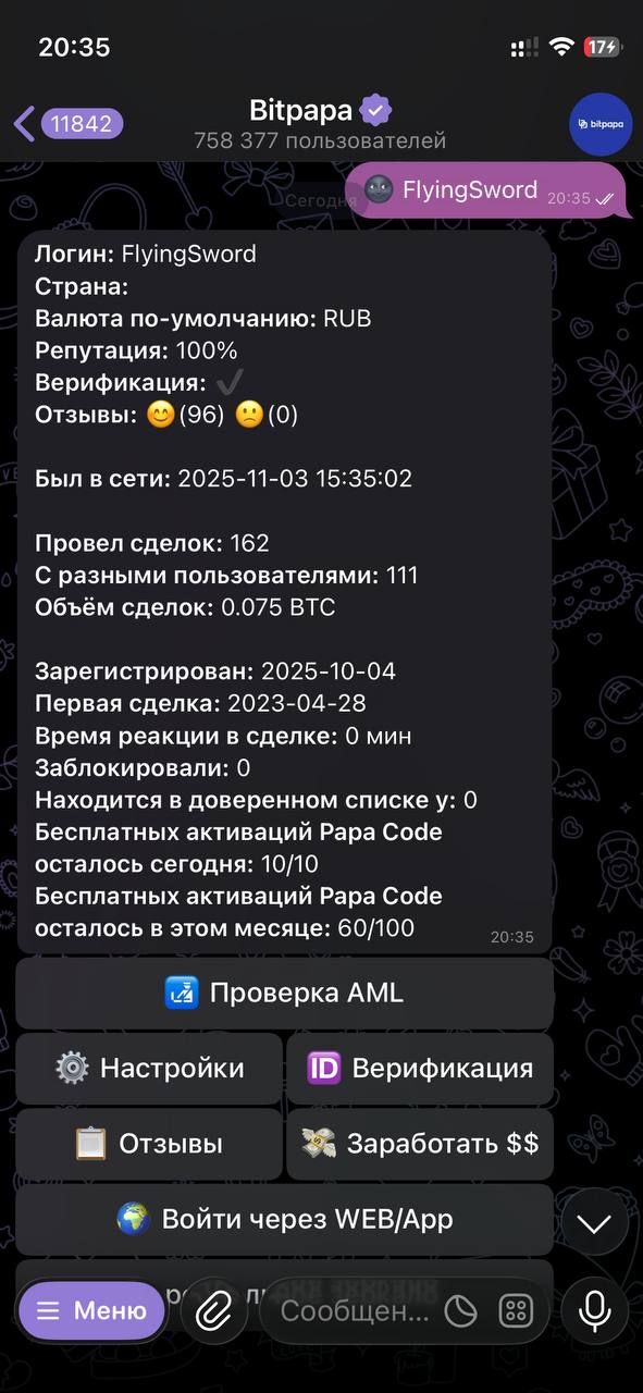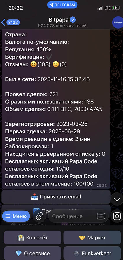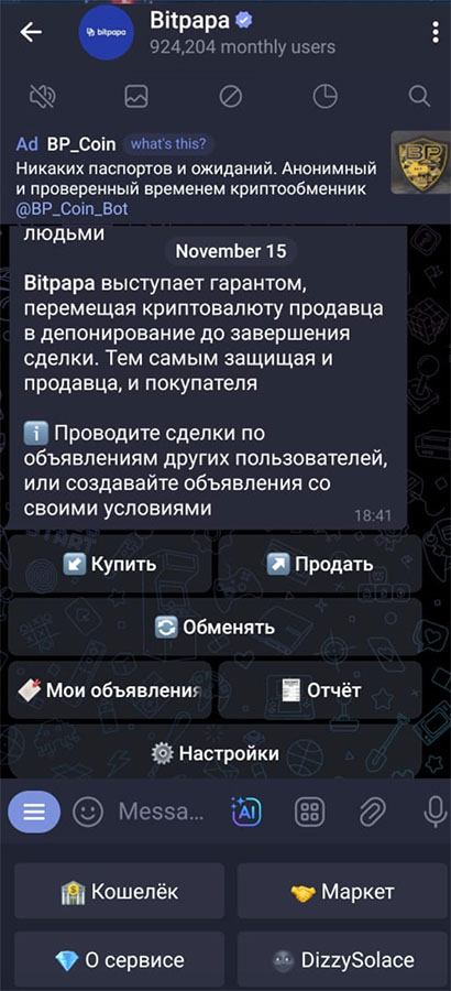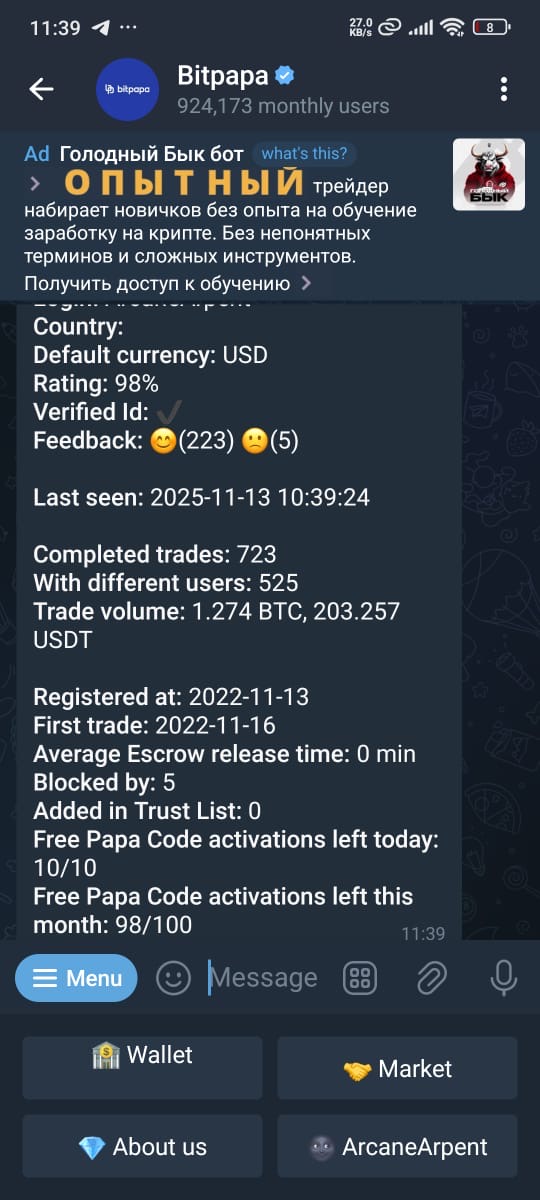 Ну что ж, с данной платформой я ознакомился два года назад, перешел на нее так как здесь в основном больше всего трейдеров чем в других тг-ботах. За два года ни увидел ни одного мошенника, в каких то решениях ситуаций поддержка всегда вставала на мою сторону, ну и трейдеры в основном уже сидят с большим… Читать далее