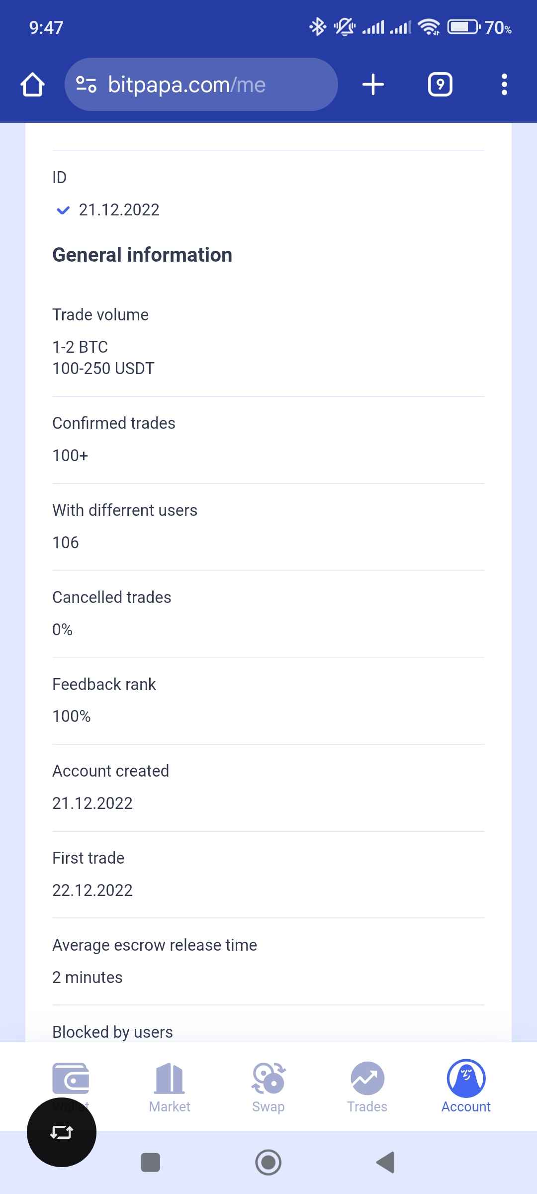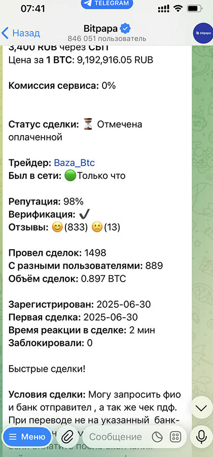 Пользуюсь Bitpapa с 2023 года — и за всё это время ни одной сорванной сделки, ни задержек, ни нервов. Всё работает чётко и быстро: выбрал продавца, оплатил — крипта уже в кошельке.