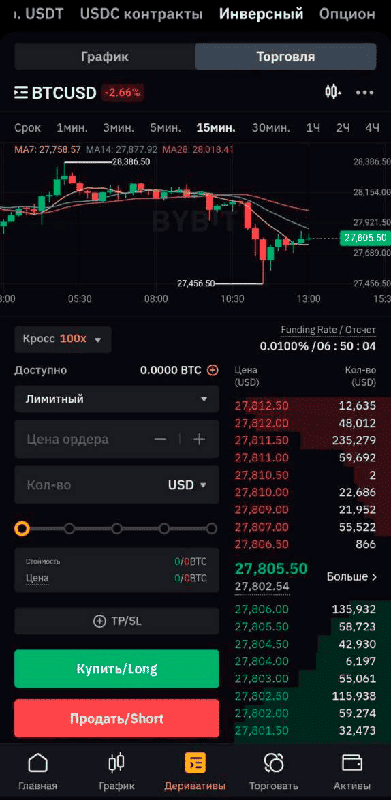 Я не профессионал, торгую больше ради интереса. На Bybit нравится, что интерфейс интуитивный, графики чёткие, а функционал не перегружен. Всё по уму: спотовая торговля, фьючерсы, стоп-лоссы, тейк-профиты — всё доступно и понятно.
