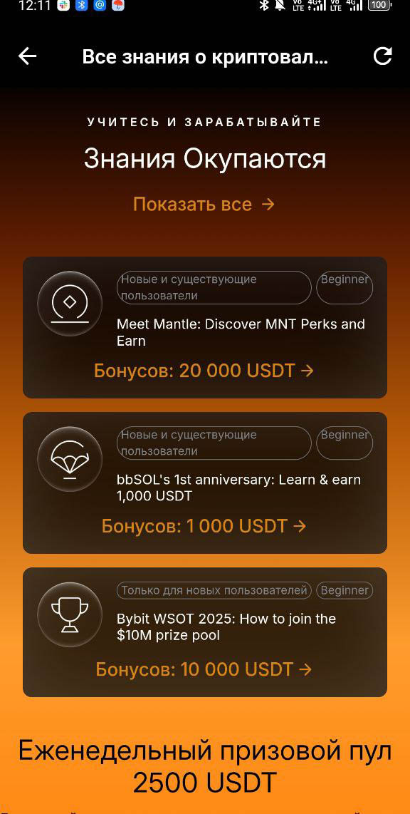 Не активный трейдер, скорее спокойный инвестор. На Bybit в основном пользуюсь Earn — удобно получать пассивный доход через гибкие накопления и стейкинг без лишнего риска. Участвовал в Launchpool, получил новые токены с хорошим процентом — начисления идут каждый день, всё прозрачно и понятно. Понравилось… Читать далее