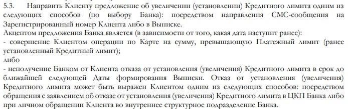 Банк имеет право сам предложить увеличить кредитный лимит по карте, и, если в течение 7 дней после того, как клиенту было направлено уведомление по смс, отказа от клиента не поступало, то лимит карты увеличивается.
