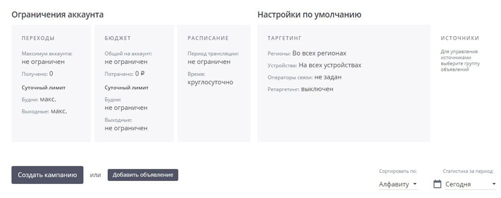 Клиенты могут устанавливать таргетинг по времени, географии, устройствам и операторам сотовой связи. Таргетинг можно устанавливать для всего аккаунта и отдельной кампании. Если надо привлекать посетителей из разных регионов, можно установить отдельные настройки в каждой кампании. Таргетинг по интересам дает возможность показывать рекламу только тем, кто недавно проявлял интерес к товару или услуге определенных категорий.