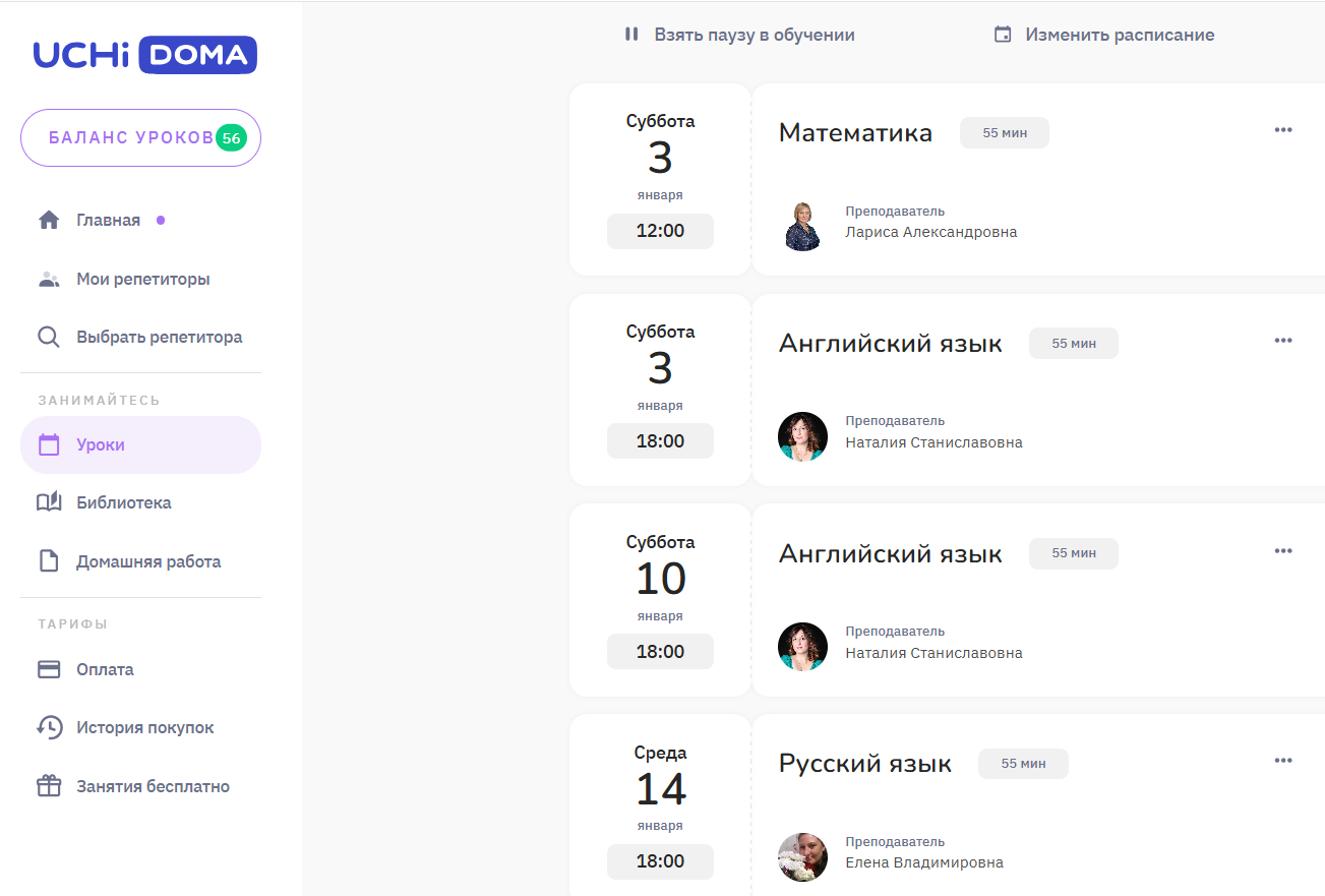 В начальной школе учились по Моро, а в 5 классе стали по Петерсон. Большая разница и по методике, и по знаниям. Нам понадобился преподаватель по математике по системе Петерсон, чтобы подтянуть пропущенные темы. Обратились в онлайн-школу Учи Дома с конкретным запросом. Нам быстро подобрали репетиторов и мы приступили к занятиям. Подобрали удобный график занятий. Сотрудники техподдержки всегда на связи. Занимаемся в школе третий месяц. Ребенок доволен и уроками, и преподавателями, уроки преподают в интересном формате. Подтянули оценки, ребенок чувствует себя более уверенным в школе