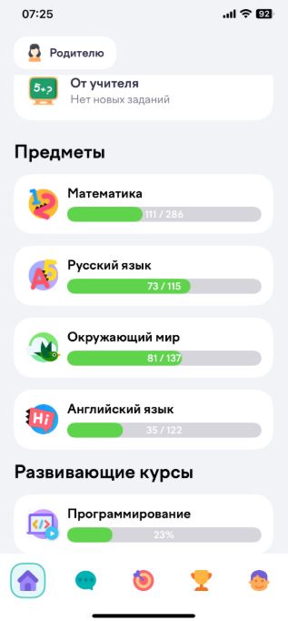 Очень хорошая площадка для обучения первоклассника, карточки понятные от простого к сложного с закреплением полученного материала неоднократно, что делает хорошую усваиваемость материала. На 94% ребенок справляется сам, после месяца использования в дальнейшим я думаю мое участие будет отсутствовать.