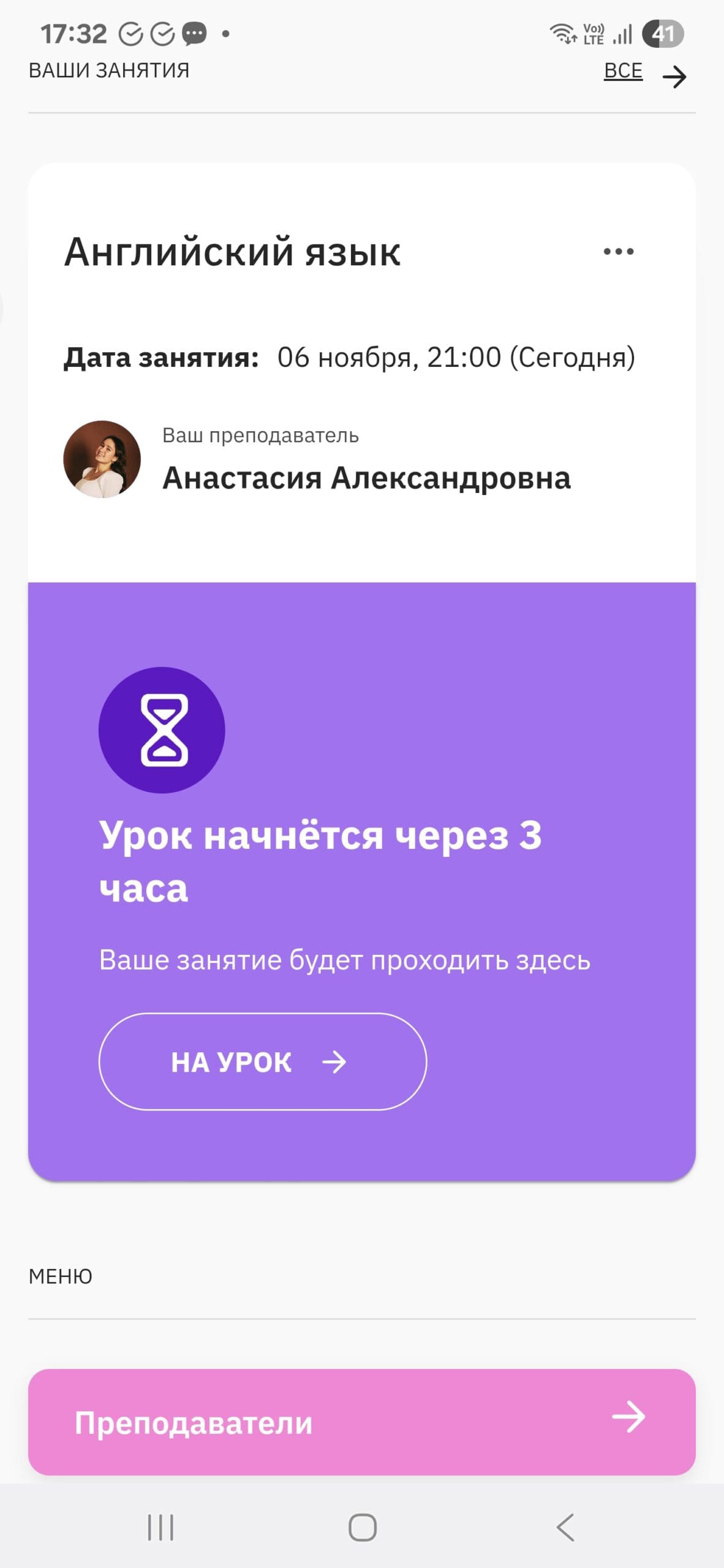 Очень довольна начальными результатами ребёнка, занятия ждёт с удовольствием, преподаватель нравится. Берём занятия английским