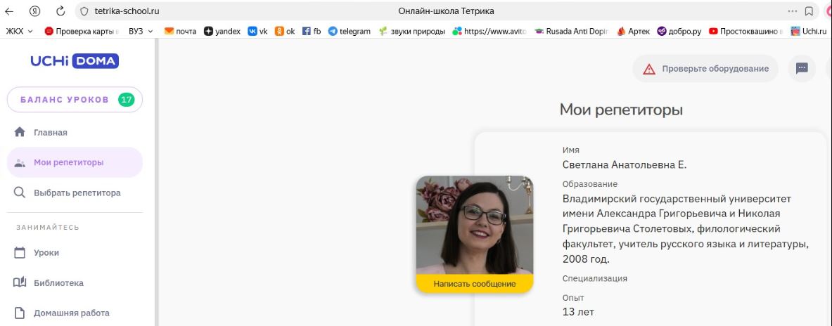 Первый раз столкнулись с онлайн репетитором. Много плюсов и к сожалению есть минусы. Ребенок занимается с репетиторами по математике и русскому языку. Довольно быстро подобрали удобное время. С преподавателями нашли общий язык. Это очень важно. Все спорные моменты оговариваем напрямую. Занимаемся несколько… Читать далее