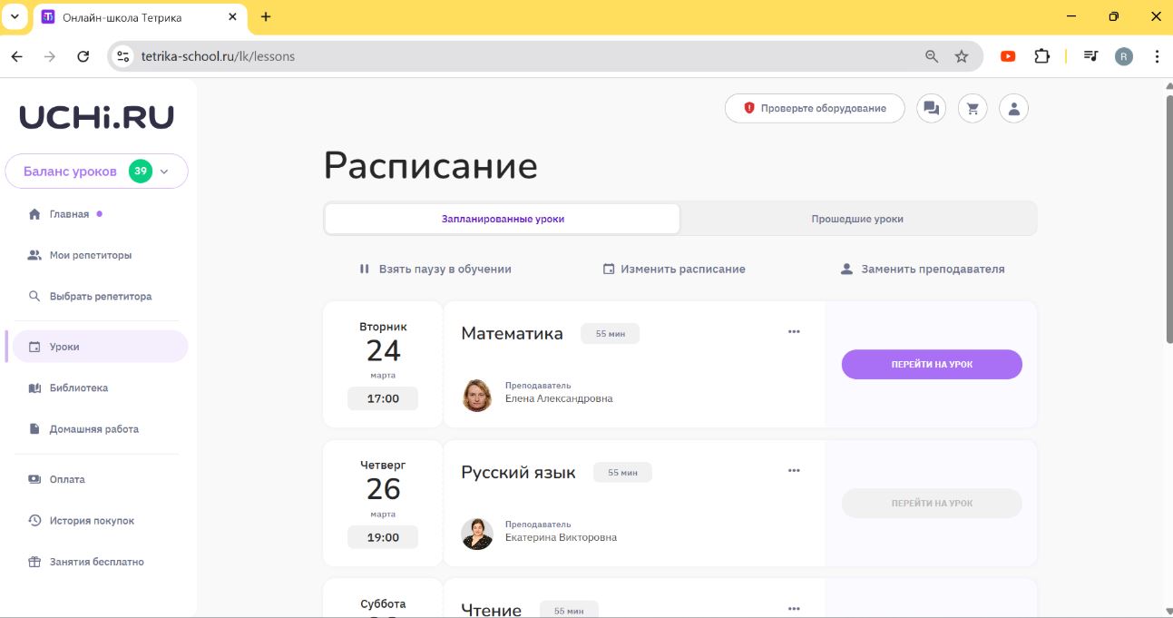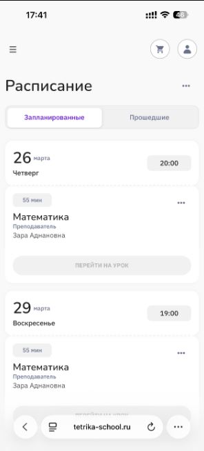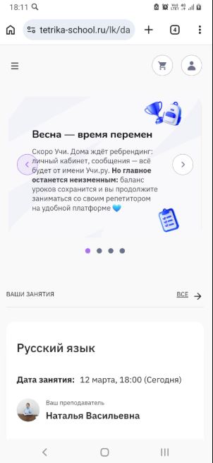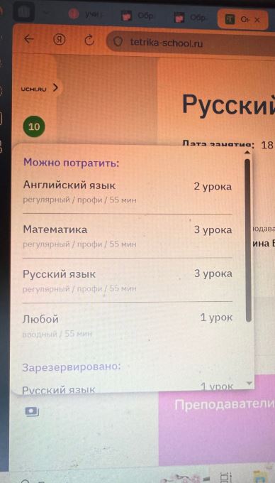 На Учи.ру в Онлайн-школе Тетрика занимаемся с марта 2026 г, в связи с болезнью ребенка, ученика 6 кл, каждый день по предметам математика и русский язык. Плюсы: 1.Замечательные педагоги; 2. Подбор удобного времени занятий; 3. Бонусом — дополнительные уроки, если педагог опоздал ;4. Удобная оплата в… Читать далее