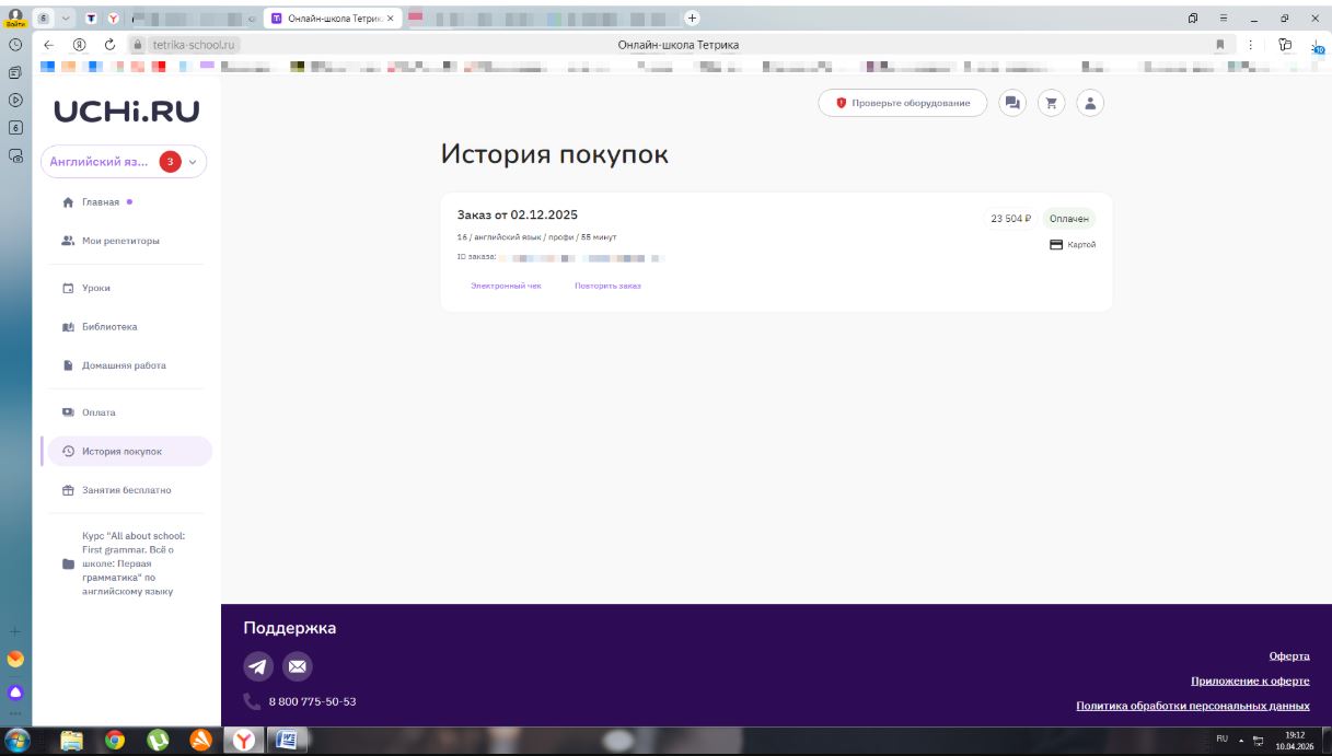 Ребёнку очень понравился преподаватель по английскому языку. Брали 16 индивидуальных занятий для устранения пробелов в учёбе и троек оценках.