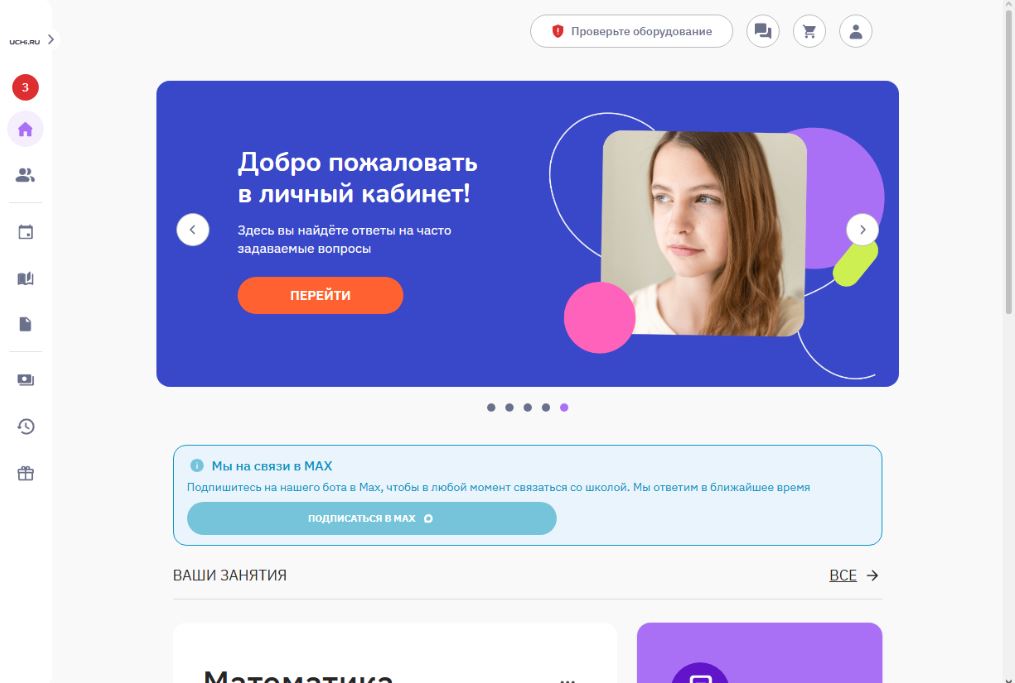 -Удобный формат. Занимаемся дома, не тратим время на дорогу. Платформа простая, ребёнок сам включает урок.