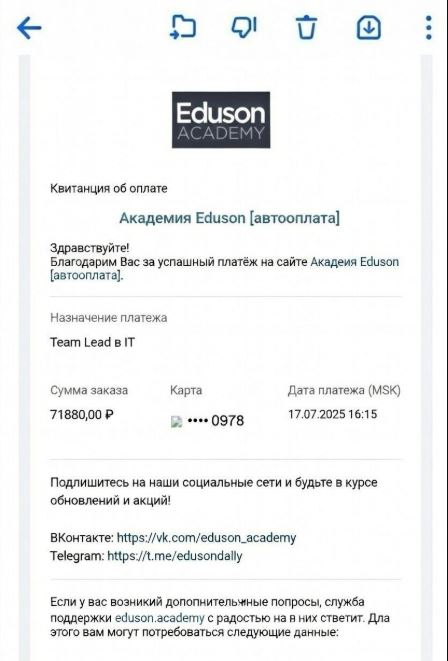 Курс Team Lead помог прокачать не только управление проектами, но и себя как руководителя. Начал лучше распределять нагрузку и не выгорать. Формат удобный, много тренажеров и практики, это реально закрепляет материал. Для тех, кто уже в IT и хочет расти дальше, самое то.