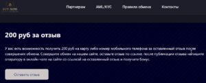 Оставив отзыв на форму.битс, можно получить 200 руб. на карту или счет мобильного телефона. После публикации комментария ссылку на него надо скинуть менеджеру обменника в онлайн-чат, после чего будет начислено вознаграждение.