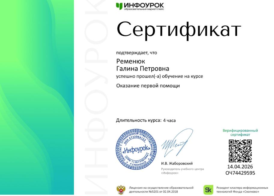 Прошла обучение по курсу , первая помощью, преподаватель очень четко внятно и понятно раскрыла тему , легко запоминается , и поэтому легко проходить тест, Очень замечательное обучение .