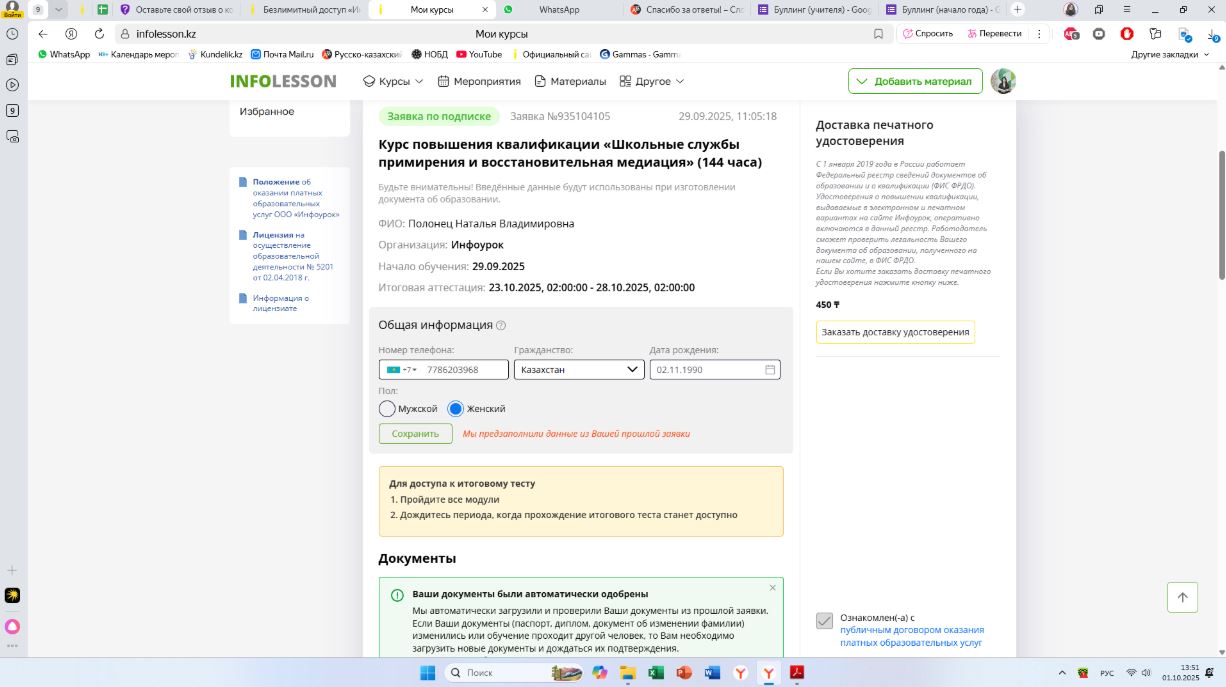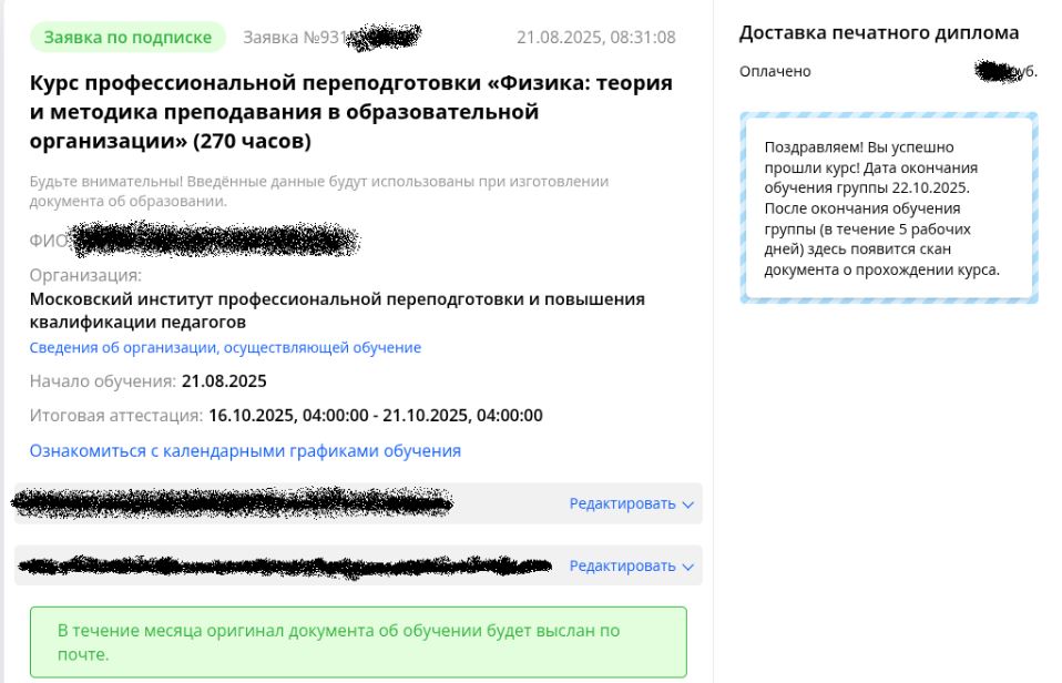 Мной была оплачена подписка, пройден курс, дата экзамена стояла 16.10.2025 года. Дату экзамена сместили без предупреждения на 27.11.2025 года по неизвестной причине. Курс был пройден с ориентировкой на дату получения диплома (необходим документ именно от октября 2025 года). Теперь чтобы мне дождаться… Читать далее