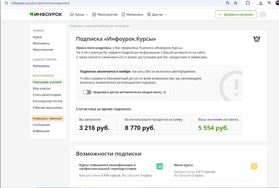 Пользуюсь платформой Инфоурок много лет. Все курсы и переподготовки в удобном доступе и обучение в любое удобное для меня время. Недорого!