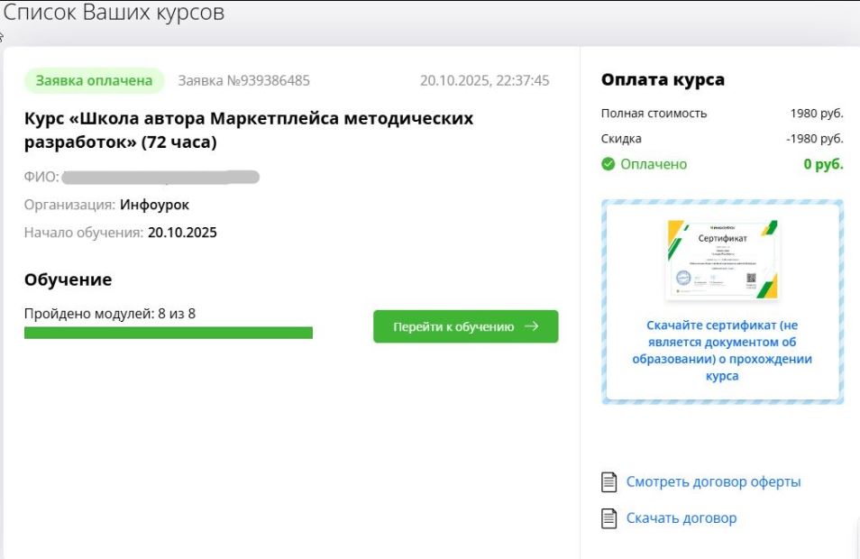 Я работающий в школе педагог. За годы работы накопила много разработок уроков, классных часов, рабочих листов, и решила поделиться ими с коллегами и заработать вознаграждение за свой труд. Выбор пал на Инфоурок. Мне было предложено пройти курс «Школа автора Маркетплейса методических разработок» . Курс… Читать далее