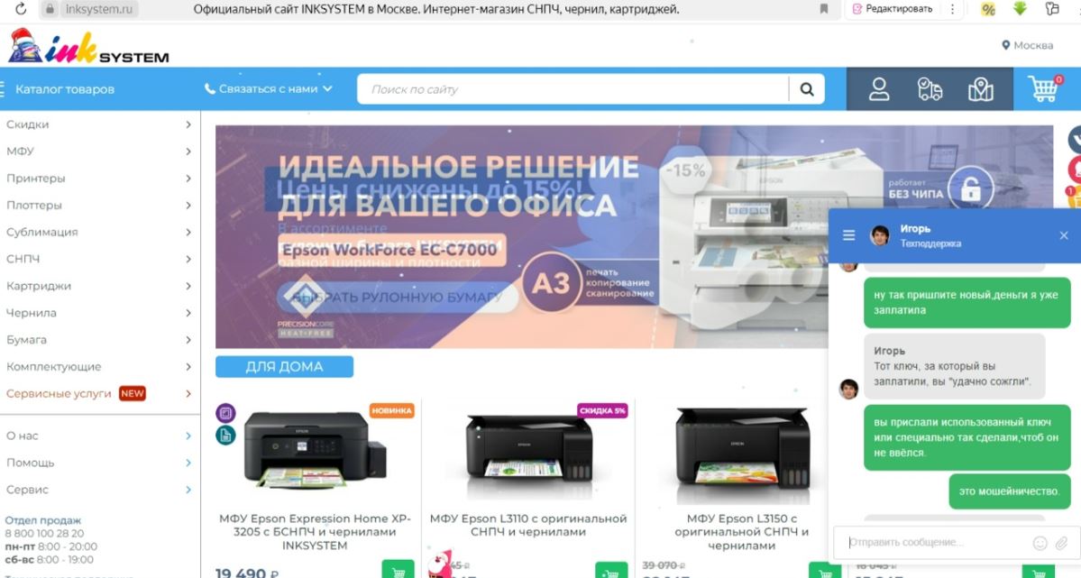 Нужно было сбросить памперс на мфу,написала в этот магазин,прислали код на оплату 1200 за ключ сброса.Оплатила.Нажала чтение памперса,заполнен на 100 процентов,ввожу их ключ,пишут чтоб перезагрузила устройство,перезагружаю,ввожу ключ,пишет,что ключ уже недействителен.Пишу в поддержку,что мфу подключено… Читать далее