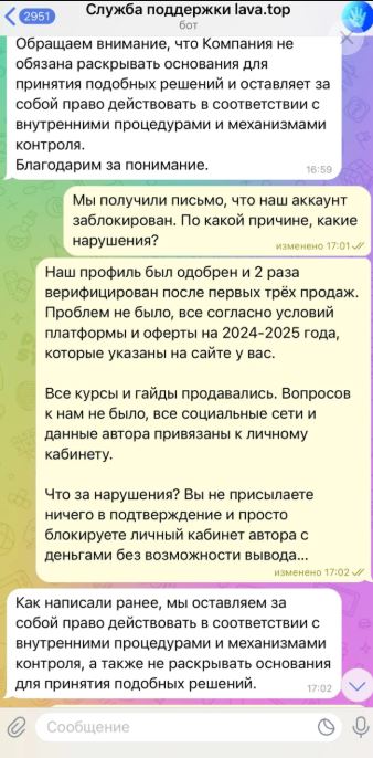 Сначала всё выглядело надёжно: поддержка отвечала, подтверждала операции, никаких проблем не было. Все наши курсы и гайды успешно прошли модерацию. Точно такие же продукты мы продаём и на GetCourse уже более 6 лет там за всё это время не возникло ни одной проблемы.