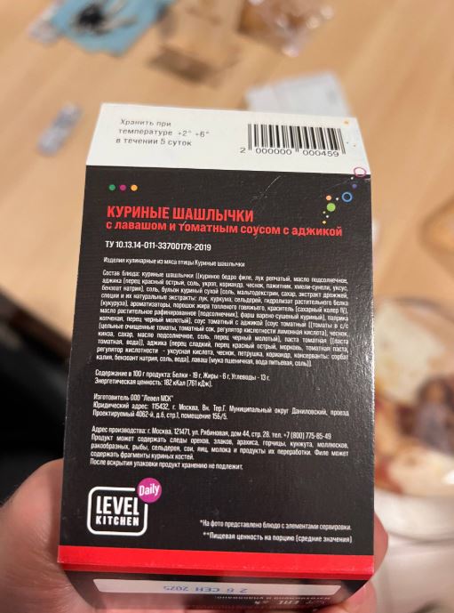 Приобрел 28 сентября 2025 года в точке с готовой едой под названии "Еду тут", по адресу Симферопольский бульвар дом 4, два готовых блюда данной компании под брендом level kitchen daily, в «куриных шашлычках» была найдена… Читать далее