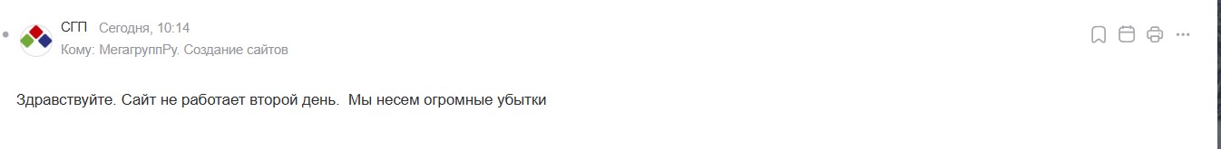 В очередной раз горе-специалисты Мегагрупп "ошиблись", да так, что продающий сайт не работает вторые сутки. Проблему не решают. Мы несем огромные убытки, на что отвечают "Мы понимаем, ничего сделать не можем, передали заявку в службу качества". Некомпетентные, безответственные специалисты… Читать далее
