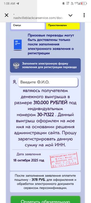 Сейчас был розыгрыш Литвина выйгала310000 р попросили заплатить комиссию 3056 р и типо придет выигрыш хрен везде обманы Дае час с ботами сделали типо все прадв повелась заплатила нечего не просто шло потом попросили еще 3174 но не было больше денег решила в интернете почитать и все пазл сошёлся муж орет что дура наивная повелась