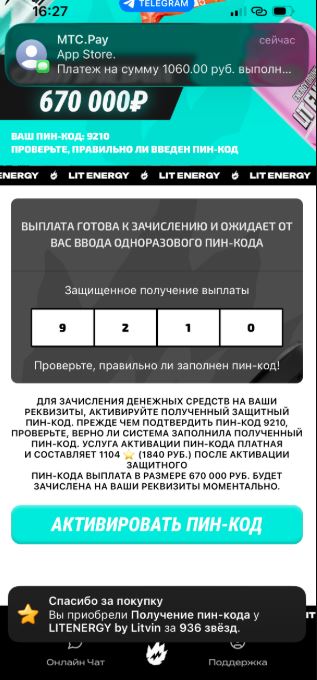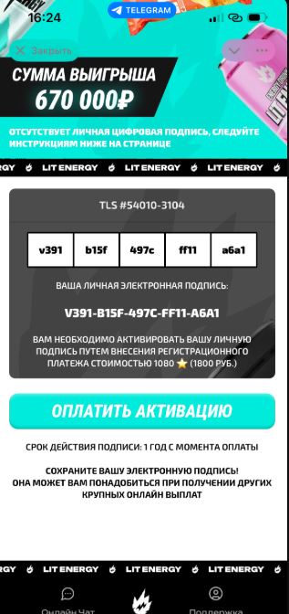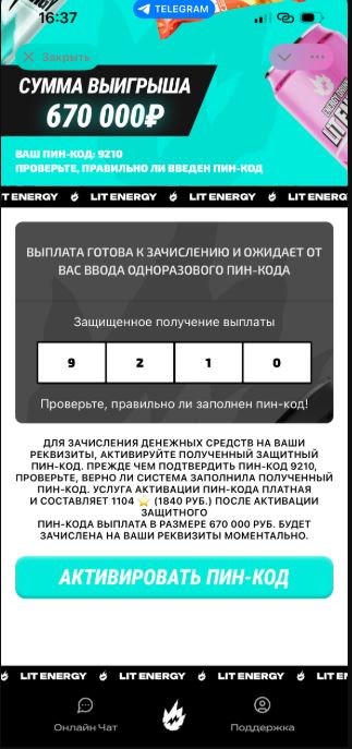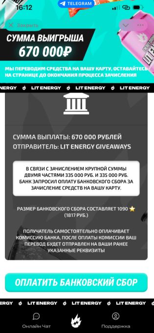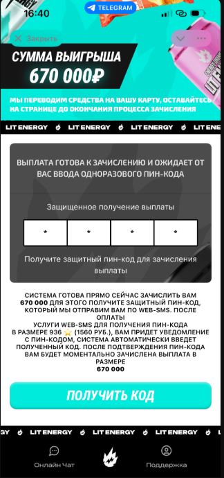 Внимание , выигрыш якобы 670т.р -лохотрон