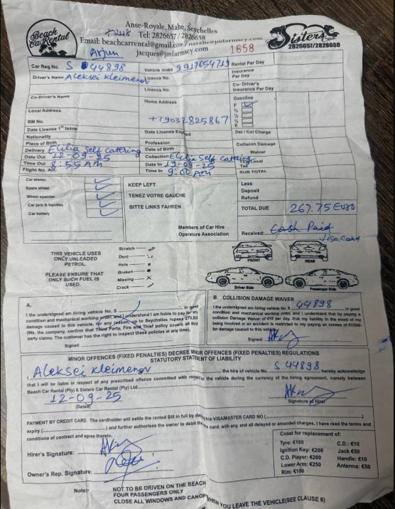 Аренда на Сейшелах. Прикрываясь франшизой прокатная контора берет с вас минимум 50 евро за любой скол или царапину, о появлении которой вы можете даже не догадываться. Фактически вы оплачиваете естественный износ автомобиля