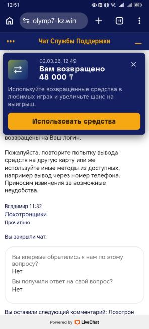 Вчера, 07.01.2022 года поставила ставку в кибер футболе на т.б.3.5…на 70й минуте при счете 3-0…на 92 минуте счет стал 4-0…но выигрыша не последовало, оказалось что в моей корзине висит ставка т.б.4.5 , но когда я на кнопочку нажимала, такой ставки и не было…было т.м.3.5 или т.б.3.5…Переписка… Читать далее