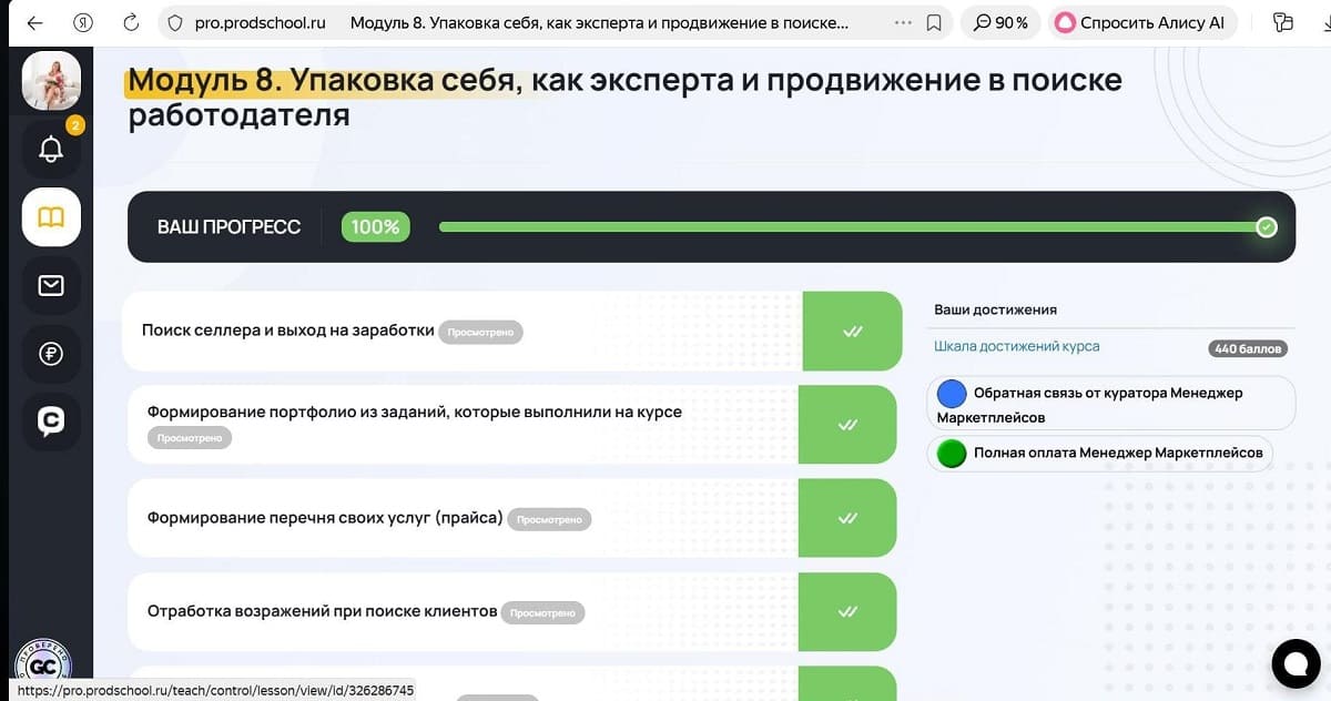 Я прошла обучение по курсу «Востребованный Менеджер маркетплейсов» в школе удаленных профессий PROдвижение.