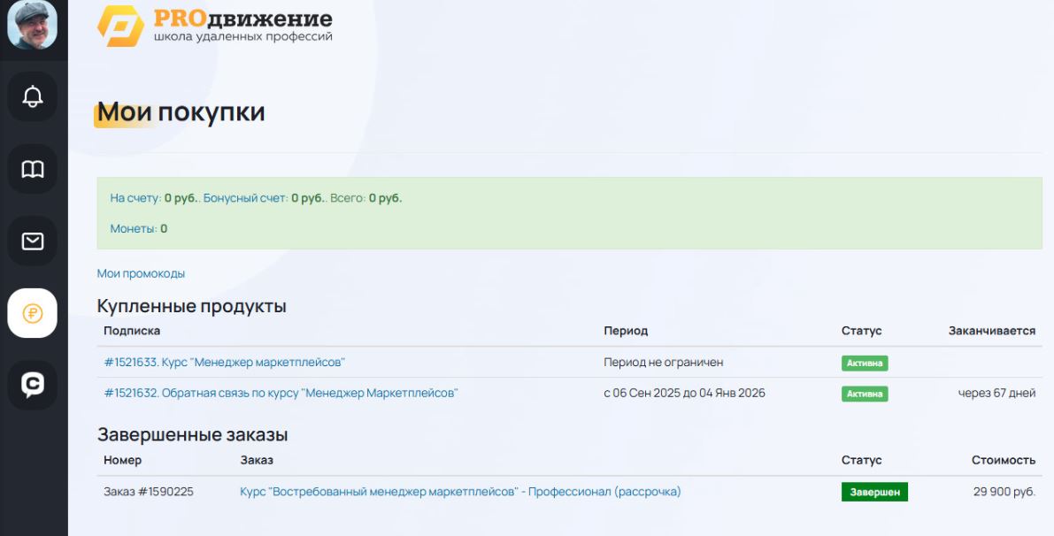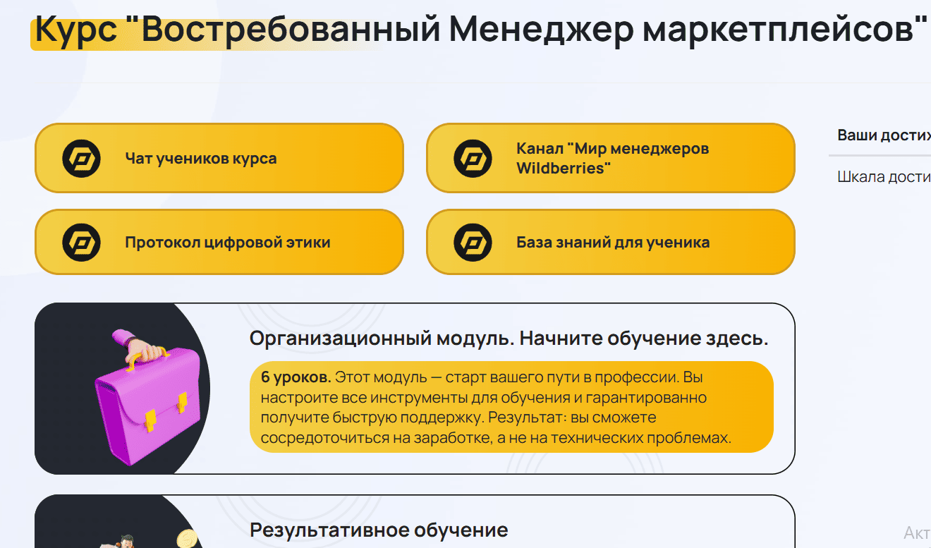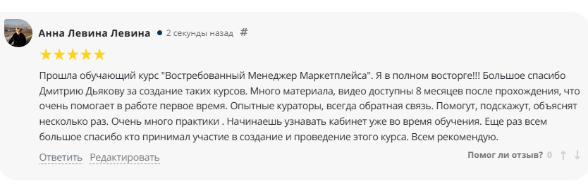 Обучение проходил на курсе «Востребованный менеджер маркетплейсов».