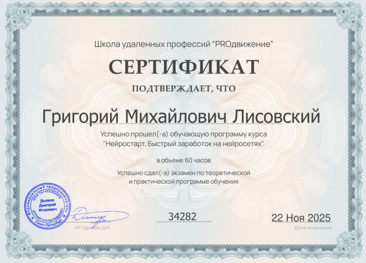 Привет! Меня зовут Григорий, и буквально пару недель назад я прошёл курс “Нейростарт. Быстрый заработок в нейросетях для начинающих” в школе PROдвижение — и хочу честно сказать: это один из самых практичных и вдохновляющих запусков, в которых я участвовал.
