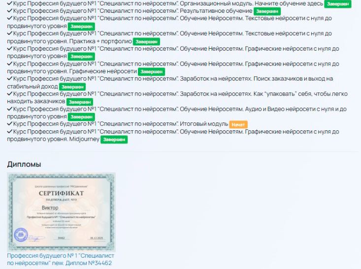 Здравствуйте. Прошёл курс "Нейростарт. Быстрый заработок в нейросетях для начинающих ". О самой школе – только лучшие впечатления. Дмитрий сумел создать настоящее, полноценное, современное учебное заведение. С множеством самых востребованных направлений обучения.