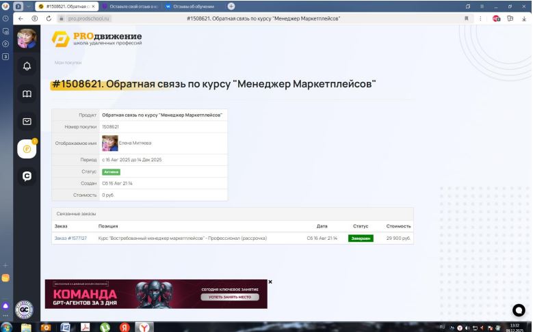 Прошла курс «Востребованный менеджер маркетплейсов» в школе удалённых профессий «PROдвижение» и спешу оставить отзыв!