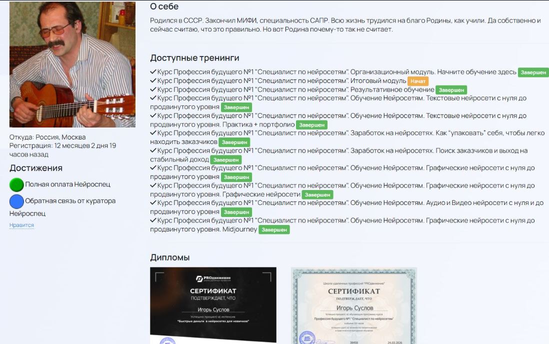 Я, пенсионер с многолетним стажем, прошел обучение в школе удаленных профессий PROдвижение на курсе «Востребованный менеджер маркетплейсов» и остался очень доволен результатом.