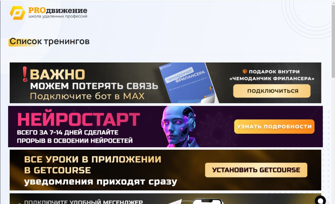 Онлайн школа удаленных профессий PROдвижение дает возможность в своем темпе,в удобное время заниматься повышением своей квалификации или освоить основы совсем новой профессии. Видеоуроки детально разбирают новый материал, можно просмотреть его сколько угодно раз. Много дополнительных материалов, практических… Читать далее