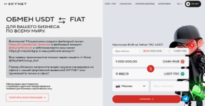 На сайте указано, что пользователи могут обменять USDT на рубли, доллары или евро, получить наличные в одном из 120 городов мира или заказать доставку средств курьером. Skynet подчёркивает высокий уровень сервиса – офисы класса А++, персональные менеджеры, фиксированный курс и полное сопровождение сделок. Для корпоративных клиентов действуют условия по курсу ЦБ с надбавкой от +1,2% и оплата инвойсов от 0,8%.