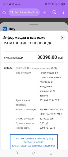 Занимаемся по 2 предметам русский и английский, с первого занятия учителя нашли подход к сыну учится с удовольствием, уроки выстроены исходя из знаний сына, говорит что все понятно, сайт удобный, простой, подвела только служба поддержки не ответили на сайте, пришлось писать в ватсап и ждать звонка для решения вопроса. Менеджер кстати говоря вопрос решил сразу) расписание тоже подобрали исходя из свободного времени ребёнка.