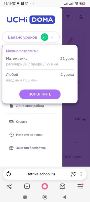 Искали репетитора по математике. Сначала купили пакет из 32 занятий. Потом еще из 32 занятий. Заодно подтянули и русский язык тоже. Удобно, что можно оплачивать частями.