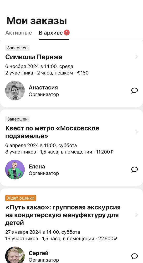 Отличный сервис для тех, кто хочет увидеть больше, чем предлагают стандартные туры. Разнообразие экскурсий — от классических обзорных по городу до самых необычных, вроде гастрономических путешествий по местным рынкам или походов по заброшенным местам. Всегда можно найти что-то по душе, независимо от интересов! Настоящая находка для любопытных путешественников. Но главное — это, конечно, гиды-энтузиасты, которые горят своим делом. Спасибо за такие незабываемые впечатления!