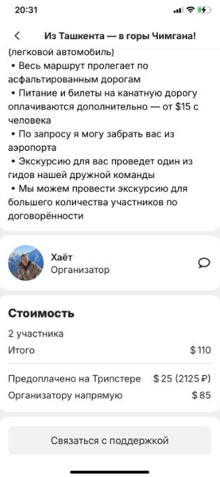 Когда-то Трипстер стал для меня открытием, с тех пор я постоянный пользователь. Всегда рекомендую его друзьям и пользуюсь в каждом путешествии. Много отзывов, поддержка всегда быстро отвечает, по отзывам легко найти ту экскурсию, которая точно понравится. В общем, лайк!