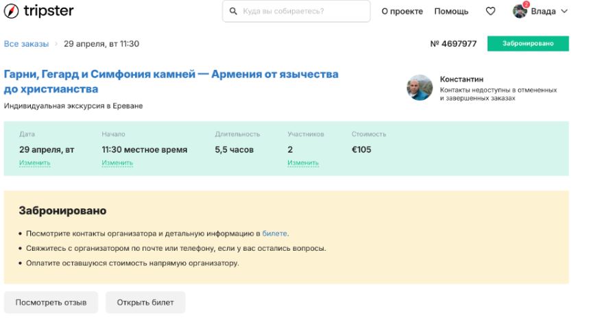 Заказываю экскурсии не часто, предпочитаю самостоятельные прогулки, но, если принимаю решение заказать экскурсию, то только Трипстер. Большой выбор, легкое бронирование, надежность. Очень рекомендую.