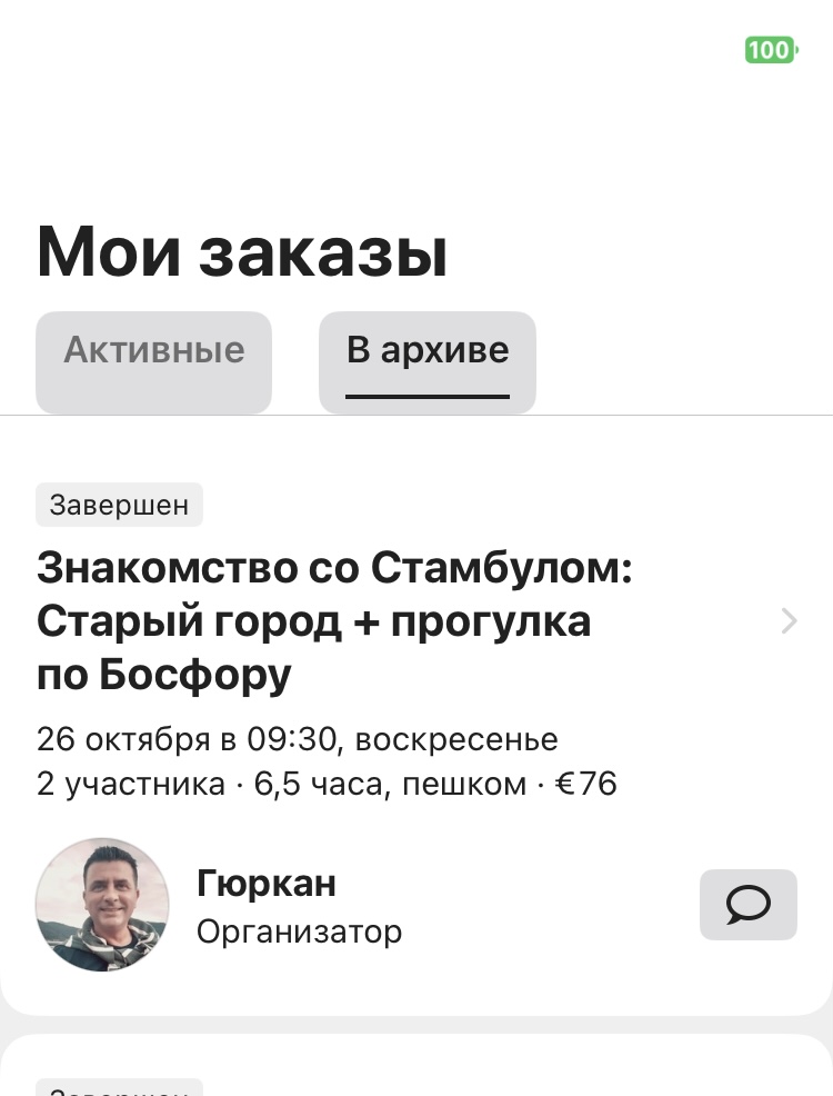 Брала на этом сервисе 3 экскурсии: 2 в Стамбуле, 1 в Антальи. Анталья и первый Стамбул прошли отлично, гиды были на высоте, все интересно, атмосфера отличная. Вторую экскурсию в Стамбуле гид отменил из-за транспортных проблем в городе (не его вина). Связалась с поддержкой — и мне без проблем вернули… Читать далее