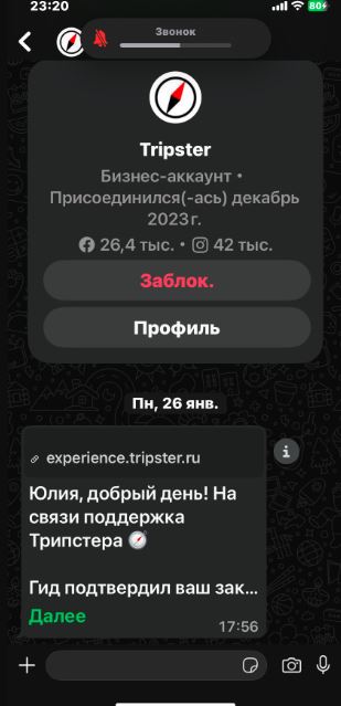 Фирма tripster клиентооринтированная фирма. Забронировала и оплатила он-лайн быстро и без проблем. Заказывала сильно заранее, в связи с чем, напоминание об экскурсии на электронную почту было очень кстати. Так же в чате оперативно отвечали на все мои вопросы. Заботливо предложили перенести экскурсию… Читать далее