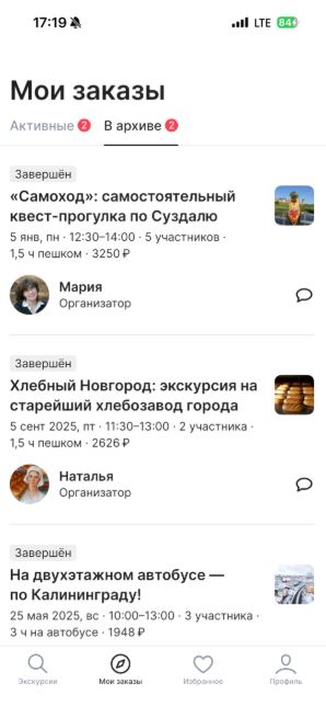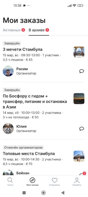 Сайтом пользуюсь давно и часто. Очень нравится, что можно подобрать как групповую, так и индивидуальную экскурсию, ориентируюсь на свои предпочтения и свои возможности. География широкая — в любом городе найдётся гид. В моей "копилке" 16 экскурсий и фотопрогулок по Стамбулу, Риму, Казани… Читать далее