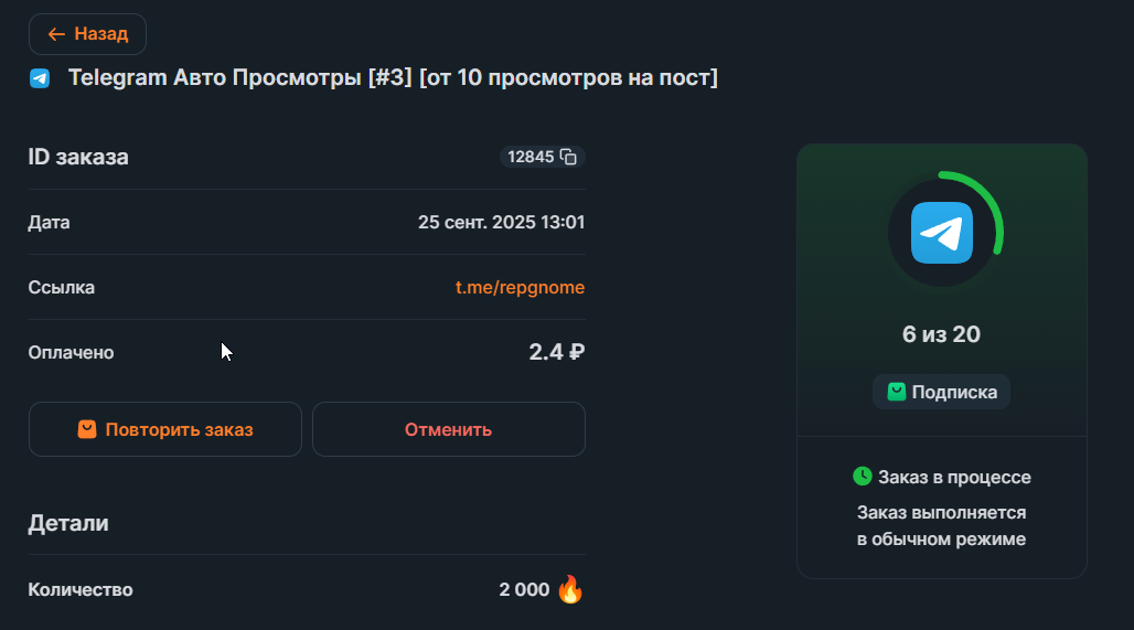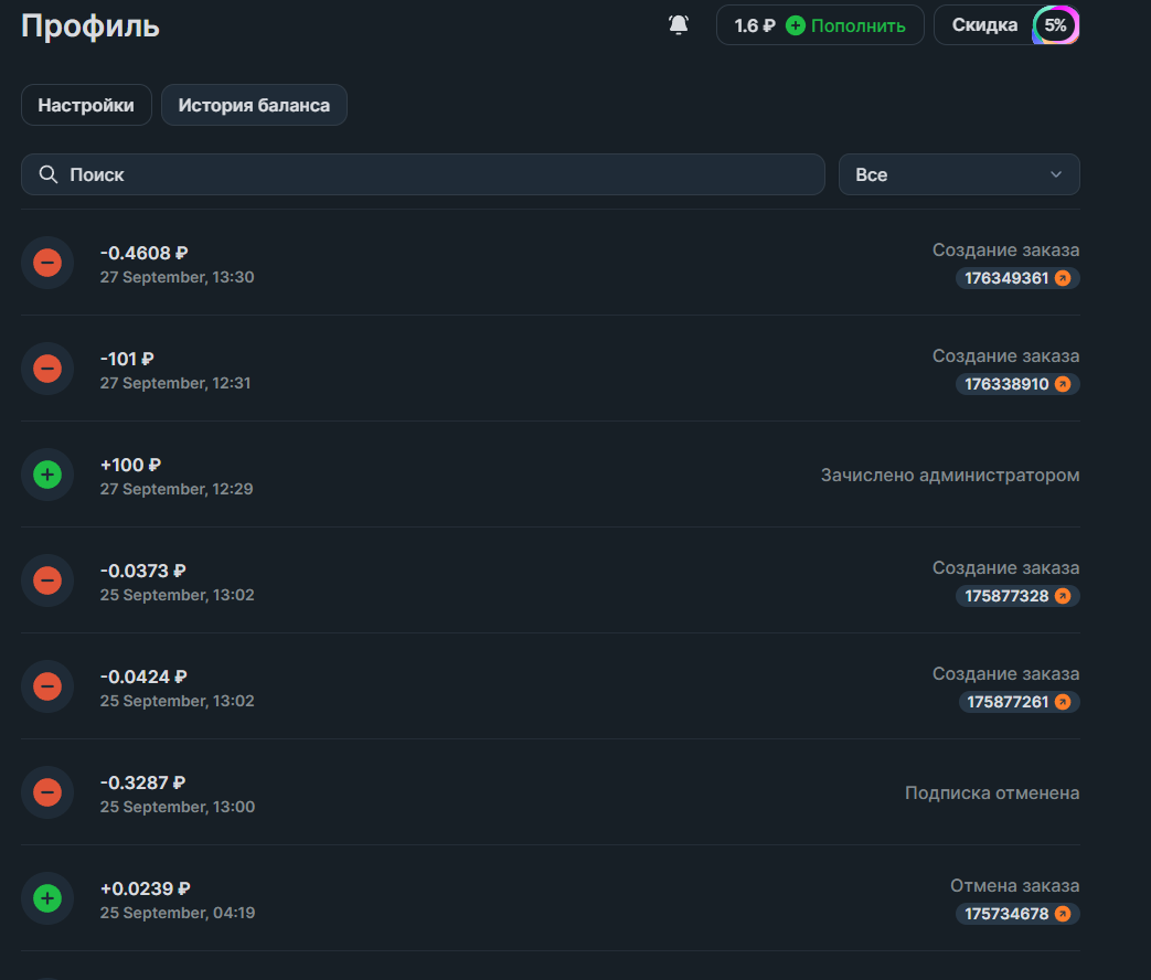 Ни раз пользовался этим сервисом и он меня не подводил,в основном заказываю подписчиков для тг,ну иногда бывает просмотры,цены довольно демократичные, а качество на высоте. Пополнение тут удобное по СБП ,от одного рубля совершено без комиссий . Вообщем один из самых лучших в своей сфере, всем советую… Читать далее