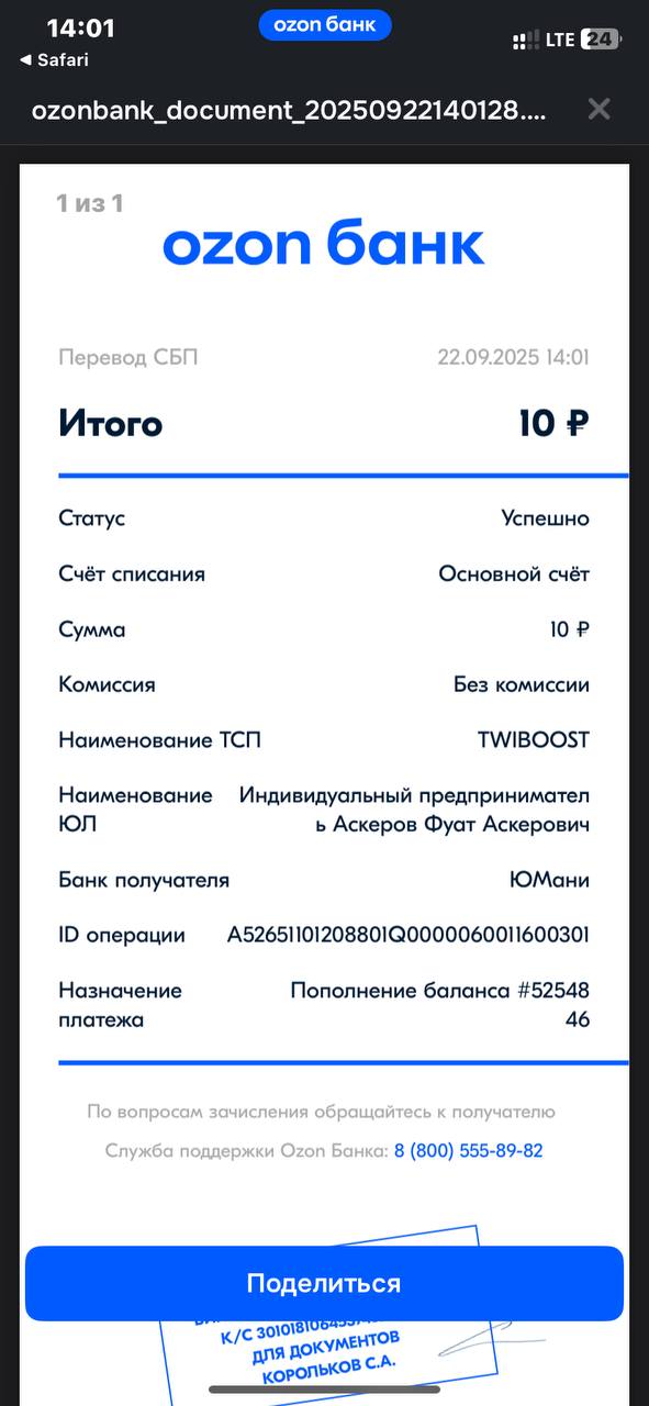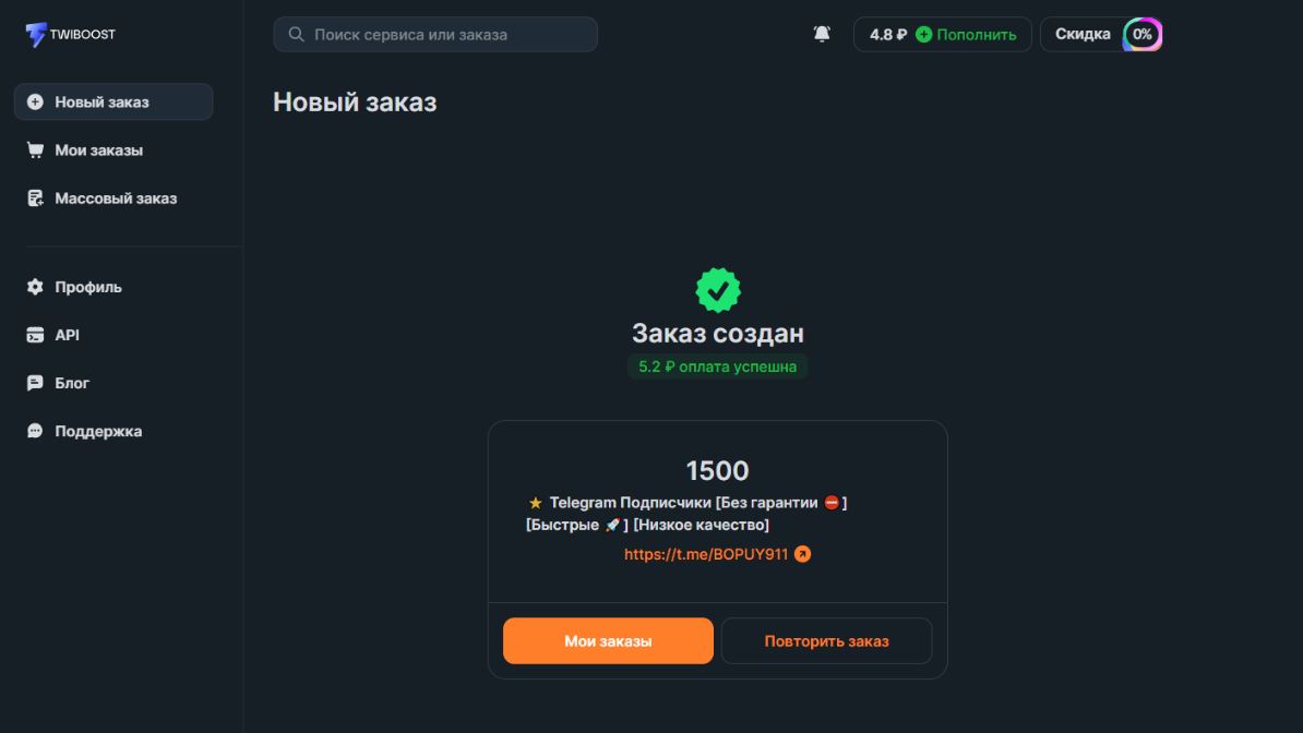 Твибуст приятно удивил. Заказ оформил за пару минут, а результат пришёл уже в тот же день. Всё быстро, удобно и без обмана. Буду пользоваться дальше!!